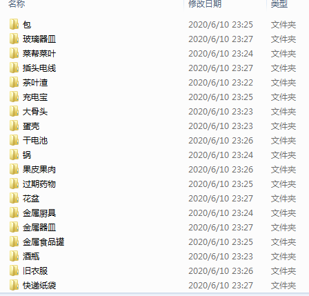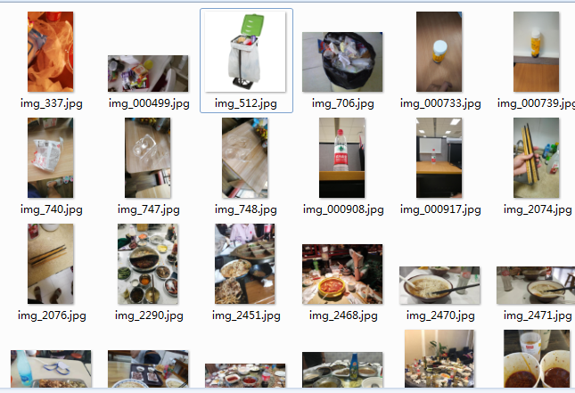 那么我们将类别分开,为了防止读取文件的时候报编码格式出错,所以已经把类别写入程序,当然在能处理好文件编码问题,直接读取train_classes.txt读取类别名称也是可以的,考虑到不同系统可能会导致文件编码问题,所以本文还是将类别名称写到程序内了,可能会显得程序有点笨重了。代码如下: import osimport xml.dom.minidomfrom PIL import Image#-------------------提前创建文件夹,用于存放图片类别---------------------#class_names = ['一次性快餐盒', '书籍纸张', '充电宝', '剩饭剩菜', '包', '垃圾桶', '塑料器皿', '塑料玩具', '塑料衣架', '大骨头', '干电池', '快递纸袋', '插头电线', '旧衣服', '易拉罐', '枕头', '果皮果肉', '毛绒玩具', '污损塑料', '污损用纸', '洗护用品', '烟蒂', '牙签', '玻璃器皿', '砧板', '筷子', '纸盒纸箱', '花盆', '茶叶渣', '菜帮菜叶', '蛋壳', '调料瓶', '软膏', '过期药物', '酒瓶', '金属厨具', '金属器皿', '金属食品罐', '锅', '陶瓷器皿', '鞋', '食用油桶', '饮料瓶', '鱼骨']root_dir = os.path.dirname(__file__)images_path = os.path.join(root_dir, 'images')for class_name in class_names: class_dir = os.path.join(images_path, class_name) if not os.path.exists(class_dir): os.makedirs(class_dir)#-------------------------------------------------------------------------#AnnoPath = r'./VOCdevkit/VOC2007/Annotations/' #标签文件路径imgPath = r'./VOCdevkit/VOC2007/JPEGImages/' #图片文件路径Annolist = os.listdir(AnnoPath)rate = { } # 创建一个字典用于存放标签名和对应的出现次数total = 0for annotation in Annolist: fullname = AnnoPath + annotation print(fullname,annotation) image_name = annotation.split('.')[0] dom = xml.dom.minidom.parse(fullname) # 打开XML文件 # print(fullname,annotation) print('---------------', total) collection = dom.documentElement # 获取元素对象 objectlist = collection.getElementsByTagName('object') # 获取标签名为object的信息 for object in objectlist: namelist = object.getElementsByTagName('name') # 获取子标签name的信息 objectname = namelist[0].childNodes[0].data # 取到name具体的值 if objectname not in rate: # 判断字典里有没有标签,如无添加相应字段 rate[objectname] = 0#----------------------拷贝图片到对应目录------------------------# image_path = imgPath + image_name+".jpg" if os.path.exists(image_path): image = Image.open(image_path) image.save(os.path.join(images_path, objectname) +'/'+image_name+".jpg")#----------------------------------------------------------------# rate[objectname] += 1 total += 1print(rate)print(total) 将代码写为depart_classes.py, 执行脚本后就可以将类别分开了。